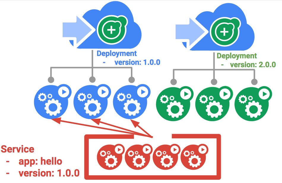 - 기존의 hello 서비스를 사용하되 선택자 app:hello, version: 1.0.0를 갖도록 업데이트