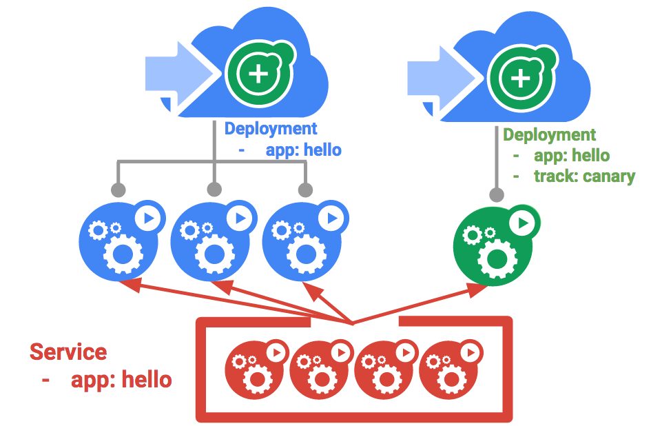 - hello서비스에서 선택기는 제품 배포 및 카나리아 배포 모두에서 포드와 일치하는 선택기를 사용