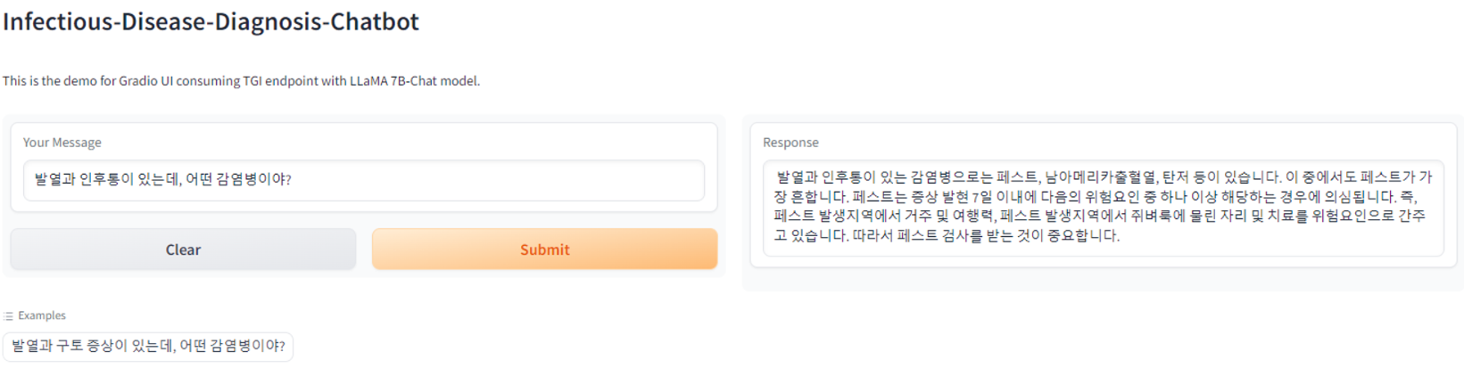 https://huggingface.co/spaces/Hyeonseo/Infectious-Disease-Diagnosis-Chatbot