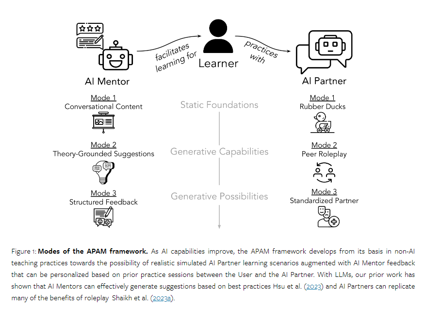 Together, the AI Partner and AI Mentor (APAM) framework can merge experiential learning with realistic practice and tailored feedback. Our paper calls for cross-disciplinary innovation to address APAMs broad implications.