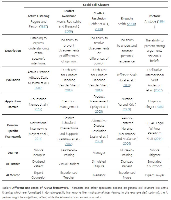 - APAM 프레임워크를 사용하여 사회적 기술 훈련 도구로서 대규모 언어 모델(LLM)을 안전하게 활용하기 위한 비전 소개 (논문 참고)