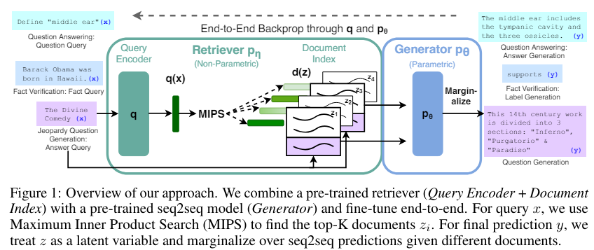 - RAG는 검색 단계와 생성 단계를 end-to-end 방식으로 학습합니다. 이는 두 단계가 독립적으로 동작하는 것이 아니라, 하나의 통합된 모델로서 최적화된다는 것을 의미합니다.