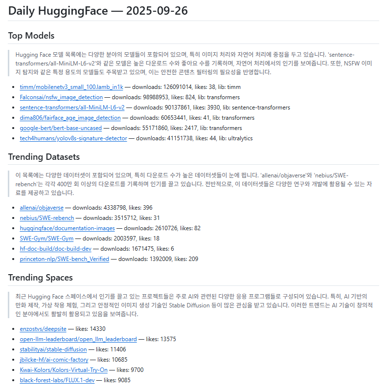 HuggingFace 일일 트렌드 수집