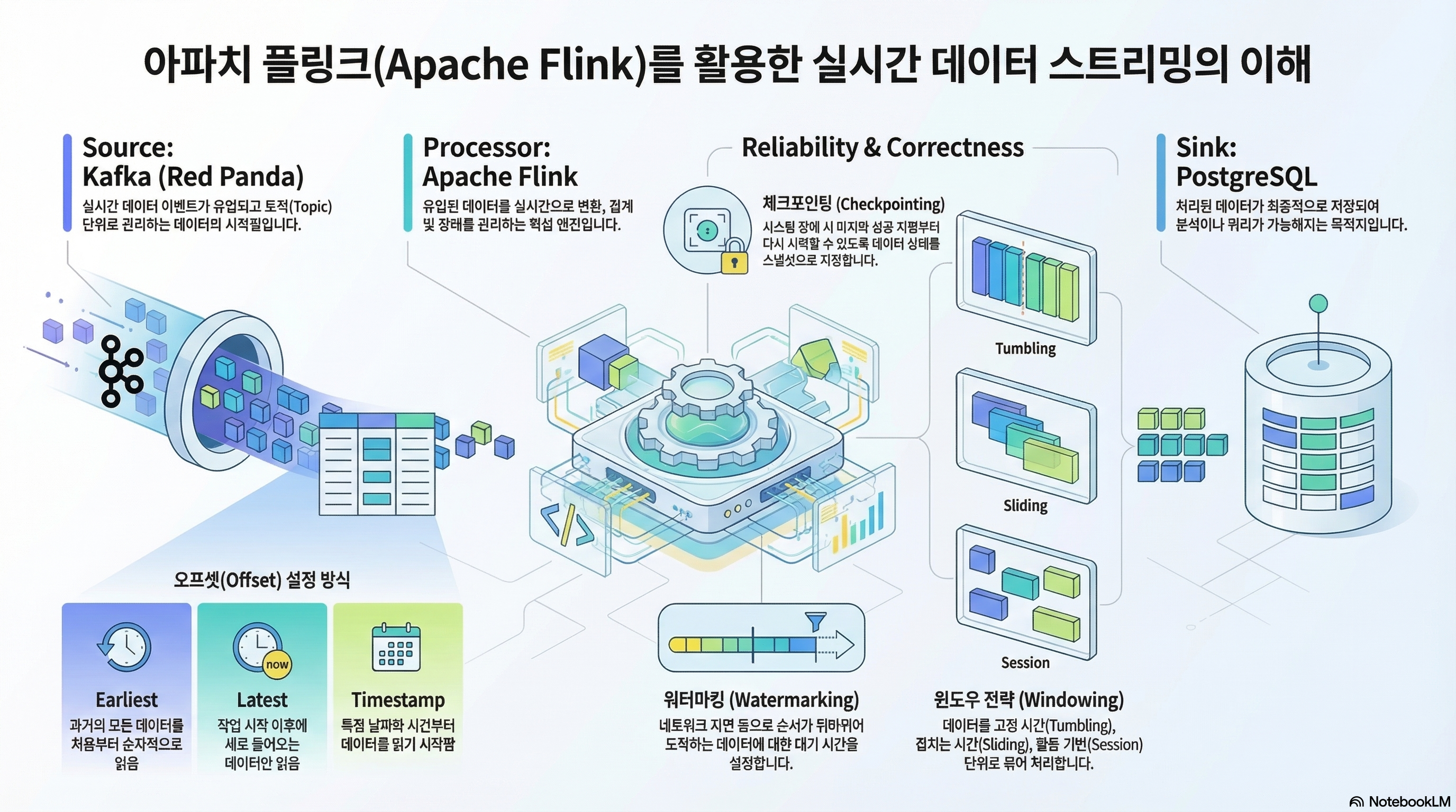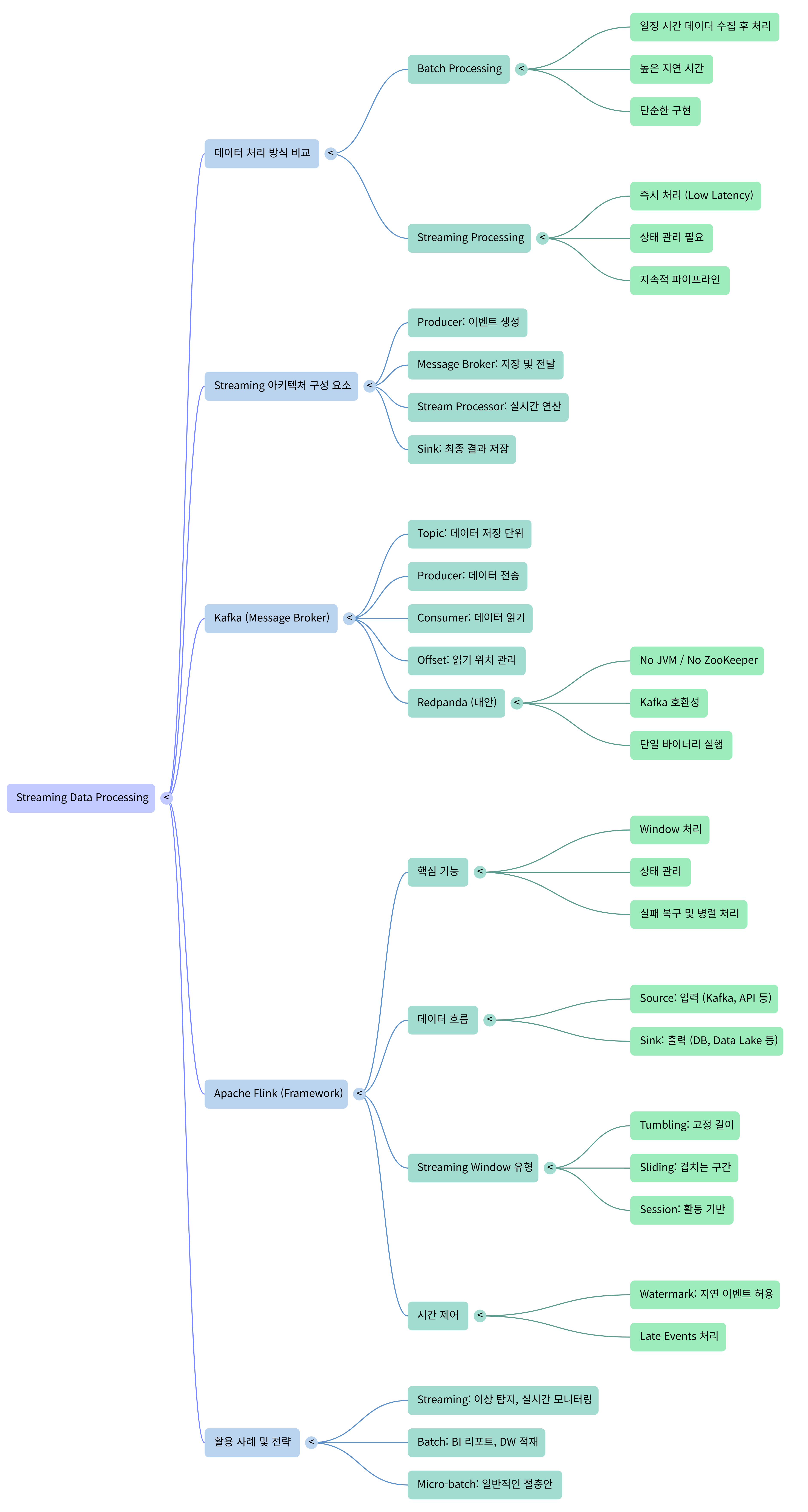 Streaming 데이터 처리의 개념과 Kafka, Flink 기반 데이터 파이프라인 구조를 정리한 글입니다.