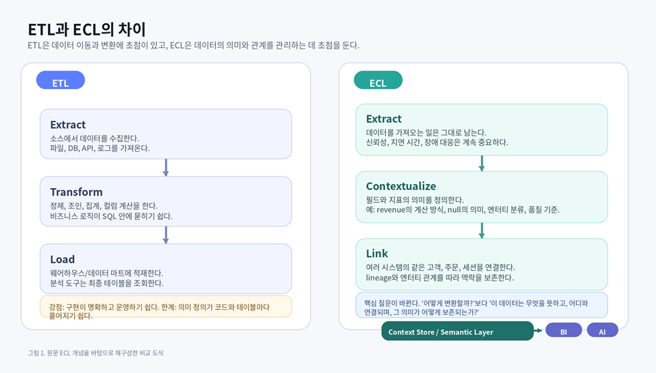 | 비교 항목 | ETL | ECL | 실무에서 보이는 변화 |