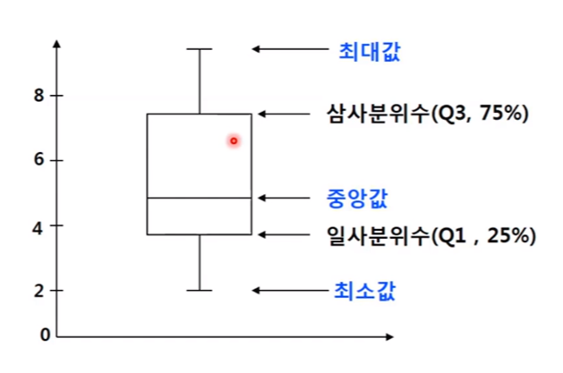 - 상자그림 설명 : 데이터의 분포를 사분위수를 중심으로 설명해주는 그림
