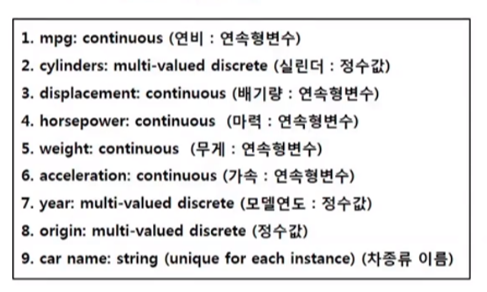 종속변수 : mpg(연비), 독립변수 : disp(배기량)