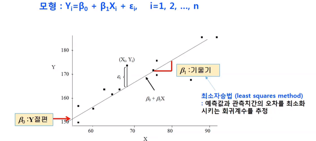 모형 : Y(i)=beta(0)+beta(1)X(i) + E(i), i=1,2, ..., n