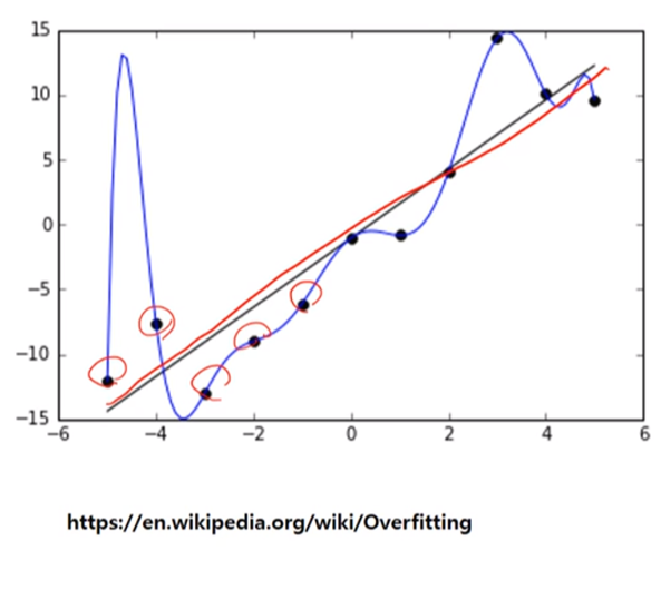 예측모형에서 훈련데이터에 대한 과한 적합모델을 선택하는 경우, 실제 데이터를 적용했을 때 더 높은 오차를 발생