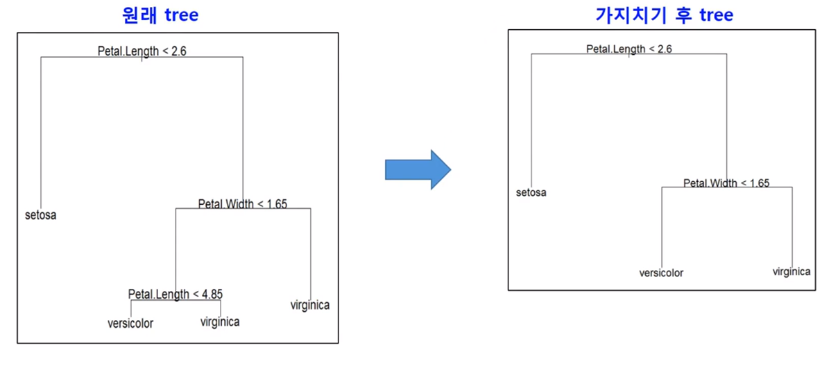 - pruning(가지치기) 전과 후의 tree