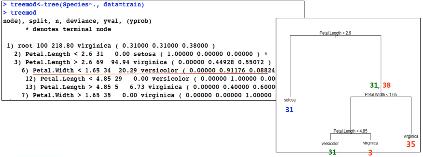 - 의사결정나무 함수 : tree (종속변수~x1+x2+x3+x4, data= )