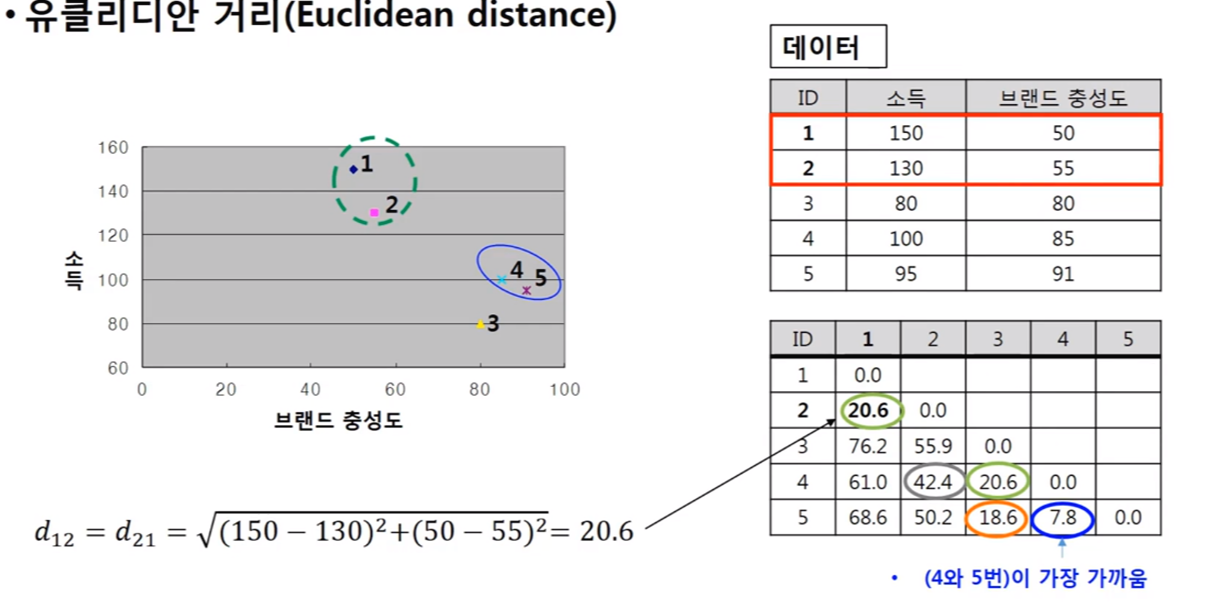 - 거리(distance) 계산 함수 : dist(데이터, method= , )