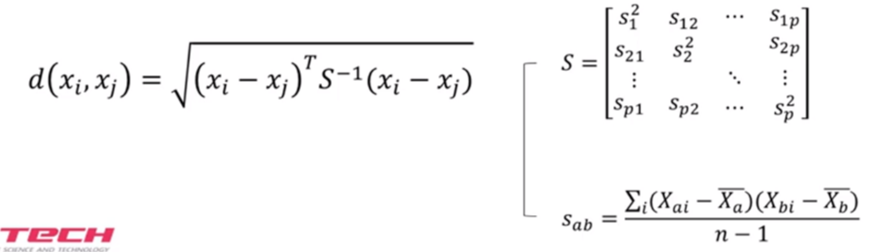 - 객체 i와 객체 j 간의 표본상관계수는 다음과 같이 정의