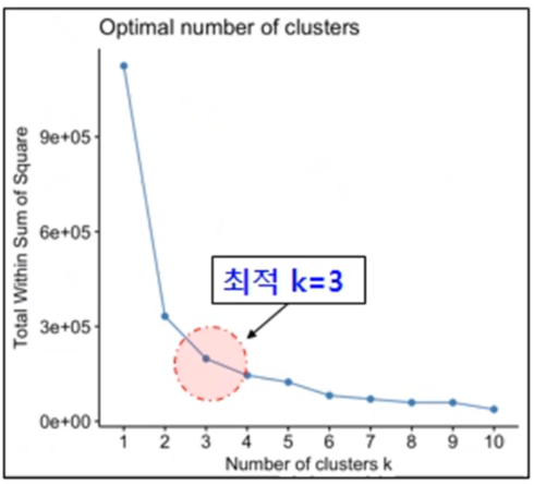 - 그래프가 완만해지는 지점을 k의 값으로 추정