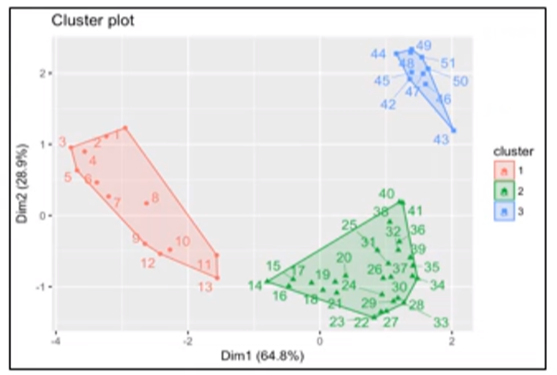 - 즉, K-medoids 군집분석은 객체들을 K개의 군집으로 구분하는데,