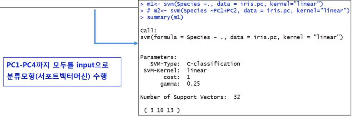 - 주성분을 이용한 서포트벡터머신 수행 (iris data)