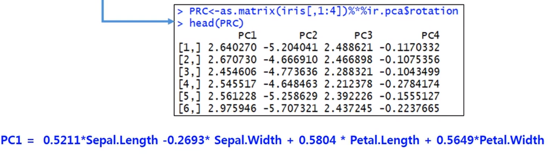 PRC는 n*p행렬, 여기서는 150*4, %*%는 행렬과 행렬을 곱할 때 사용