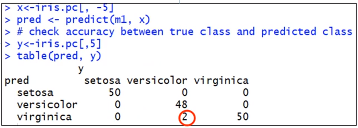 주성분을 이용한 분류 오분류율 : 2/150=0.013 (1.33%)