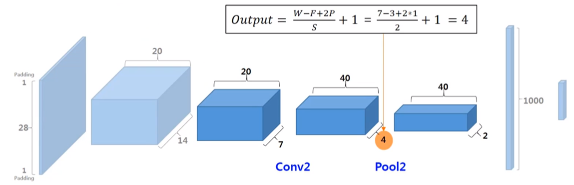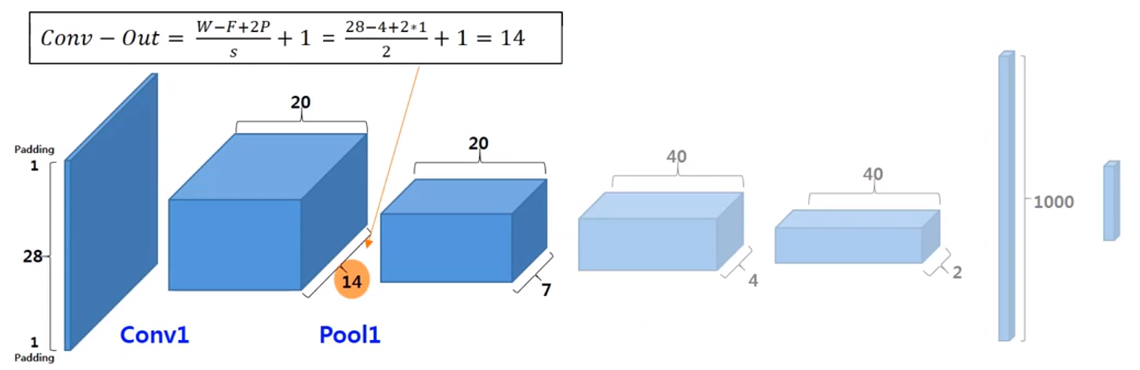 - Convoltional Layer 사이에 Pooling Layer를 넣어주는 방법이 많이 사용됨