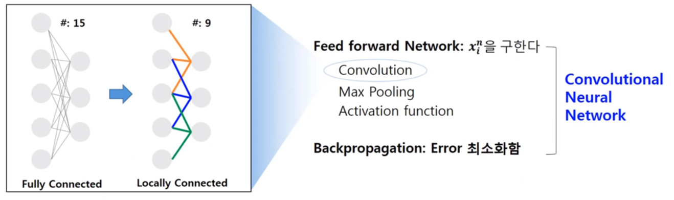 - 따라서, 각 뉴런들이 이미지의 일부의 특성feature만 연결될 수 있는 구조가 더 적합함