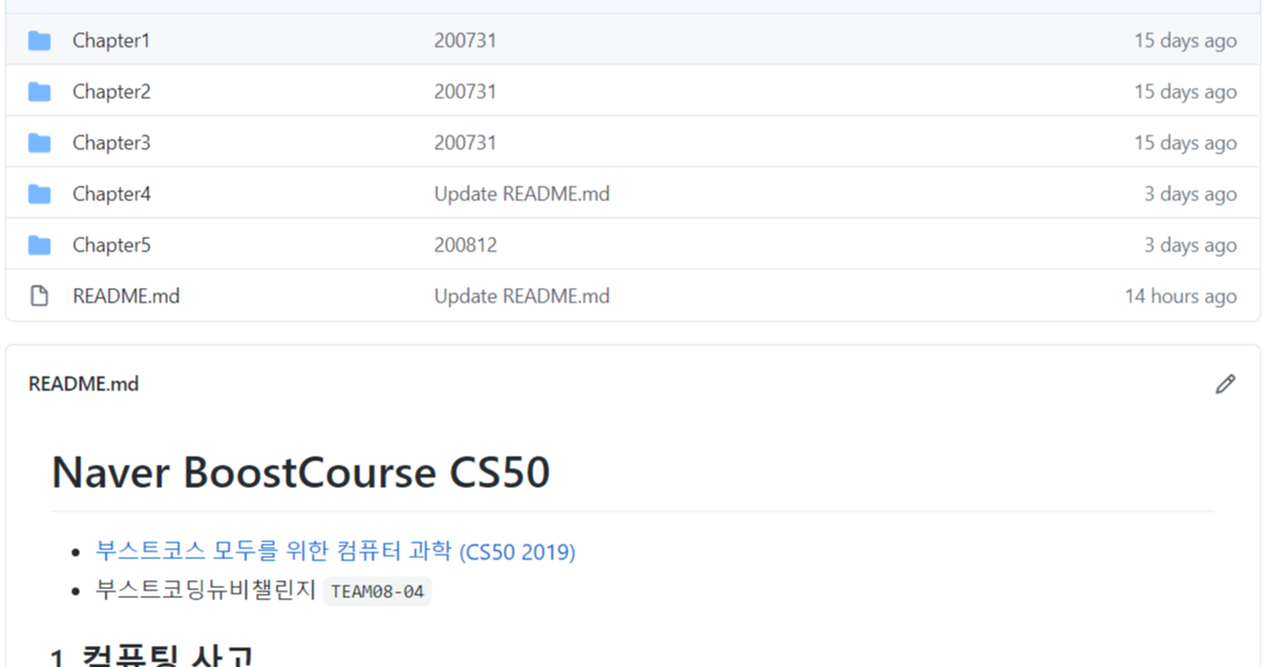 2주차 CS50 강의에서는 CS50 샌드박스 사이트에서 C언어 실습을 진행할 수 있었습니다. 1년 전에 C언어를 배웠던 저로서 2주차 미션이 스토리가 있어 실제로 이렇게 쓸 수 있구나 라고 생각해볼 수 있어서 재밌게 느껴졌습니다. 팀원들과도 코딩 과정에서 발생한 오류를 함께 해결해가며 미션을 수행하였습니다. 라이브 강의와 사전 동기 부여 강의에서 강조하신 꾸준한 공부를 위한 일일 커밋을 실천하고 있습니다. github를 이번 기회에 알게 된 팀원도 있어서 github 저장소를 활용해보고 함께 일일 커밋을 실천해보고자 이번 부스트 코딩 뉴비 챌린지 저장소를 생성하였습니다. 저장소에서 팀원 간 코드 내용을 공유하고 라이브 강의 내용을 정리하고 있습니다. 원래 공개 저장소였으나, 미션 내용이 포함되어 비공개 저장소로 변경하였습니다.