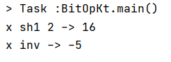 println("x sh1 2 -> ${x.shl(2)}") // 16(10진수). 0001_0000(2진수)